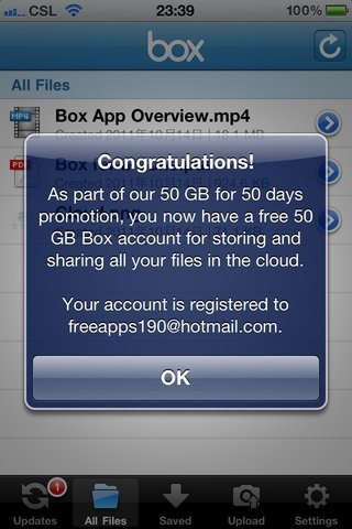 iCloud 的推出,令很多人也十分高興,然而你相信 5GB 的免費空間真的能夠足夠你使用嗎?Box.net 為了「對抗」iCloud,宣佈現在至 12 月 2 日,只要透過 iPhone/iPad 登記 Box.net 帳戶即可取得 50 GB 網上雲端儲存空間了!有些人以為 12 月 2 日後便會降回原來的儲存容量,這是錯的!Box.net 官方表示這是永久的!